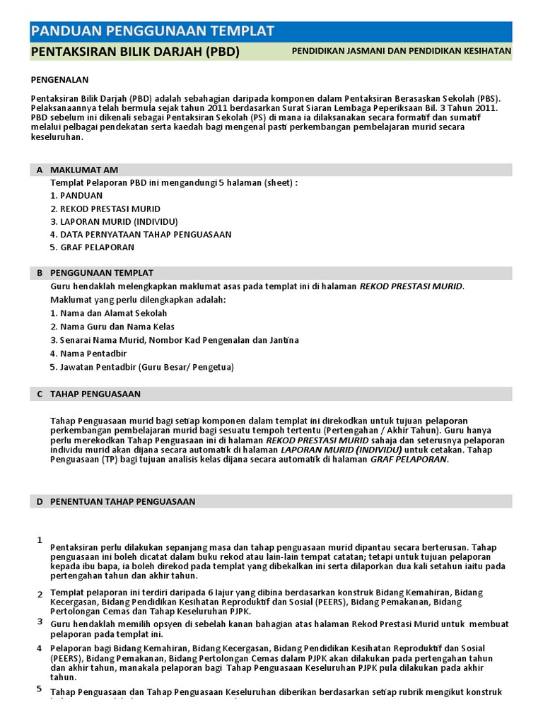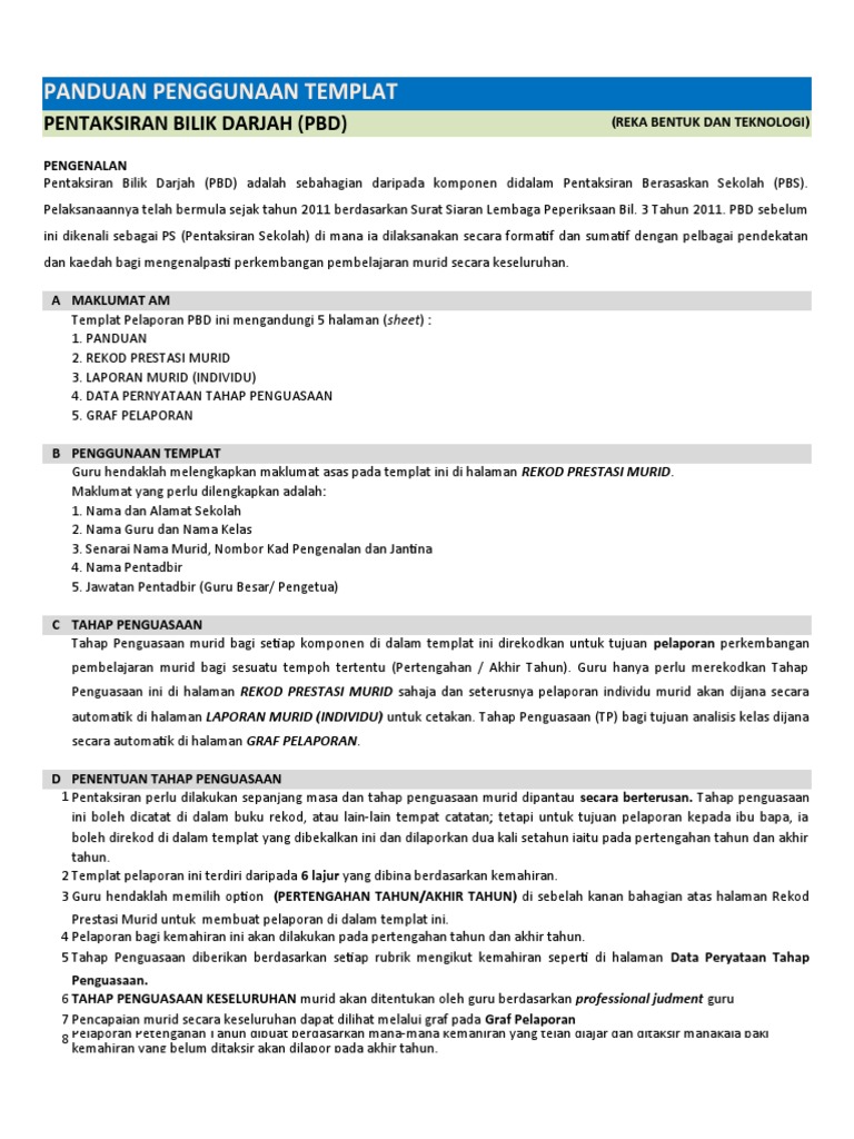 Panduan Pengisian Templat Pelaporan Pentaksiran Bilik Darjah Pbd 2018